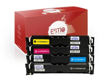 - Zestaw tonerów zamienników Canon 069H CMYK Estio – wydajność: czarny do 7600 stron, kolory do 5500 stron; zestaw to najbardziej opłacalna opcja zakupu, zapewniająca kompleksową obsługę drukarki i maksymalną oszczędność.