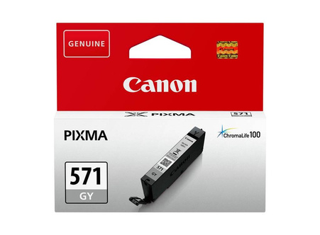 Tusz oryginalny Canon o symbolu CLI-571GY / 0389C001. Wydajność 350 stron. Produkt pochodzący z oficjalnej dystrybucji marki Canon. W opakowaniu znajduje się 1 sztuka drukująca w kolorze szarym.