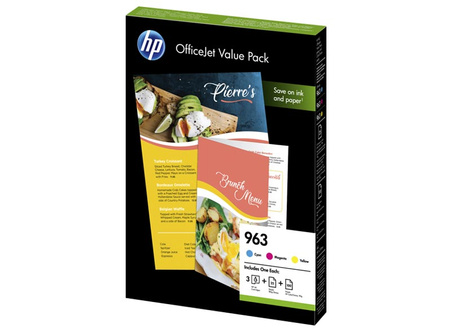 Tusze oryginalne HP o symbolu 963 / 6JR42AE. Wydajność 2100 stron kolory (3x 700 stron). Produkt pochodzący z oficjalnej dystrybucji marki HP. W opakowaniu znajdują się 3 sztuki drukujące w kolorze niebieskim, magenta oraz żółtym.