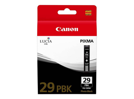 Tusz oryginalny Canon o symbolu PGI-29PBK / 4869B001. Wydajność 724 strony. Produkt pochodzący z oficjalnej dystrybucji marki Canon. W opakowaniu znajduje się 1 sztuka drukująca w kolorze czarnym.