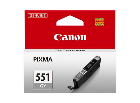 Tusz oryginalny Canon o symbolu CLI-551GY / 6512B001. Wydajność 125 stron. Produkt pochodzący z oficjalnej dystrybucji marki Canon. W opakowaniu znajduje się 1 sztuka drukująca w kolorze szarym.