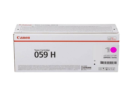 Toner oryginalny Canon o symbolu 059H. Wydajność 13500 stron. Produkt pochodzący z oficjalnej dystrybucji marki Canon. W opakowaniu znajduje się 1 sztuka drukująca w kolorze magenta.