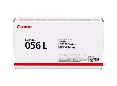 Toner oryginalny Canon o symbolu 056L. Wydajność 5100 stron. Produkt pochodzący z oficjalnej dystrybucji marki Canon. W opakowaniu znajduje się 1 sztuka drukująca w kolorze czarnym.