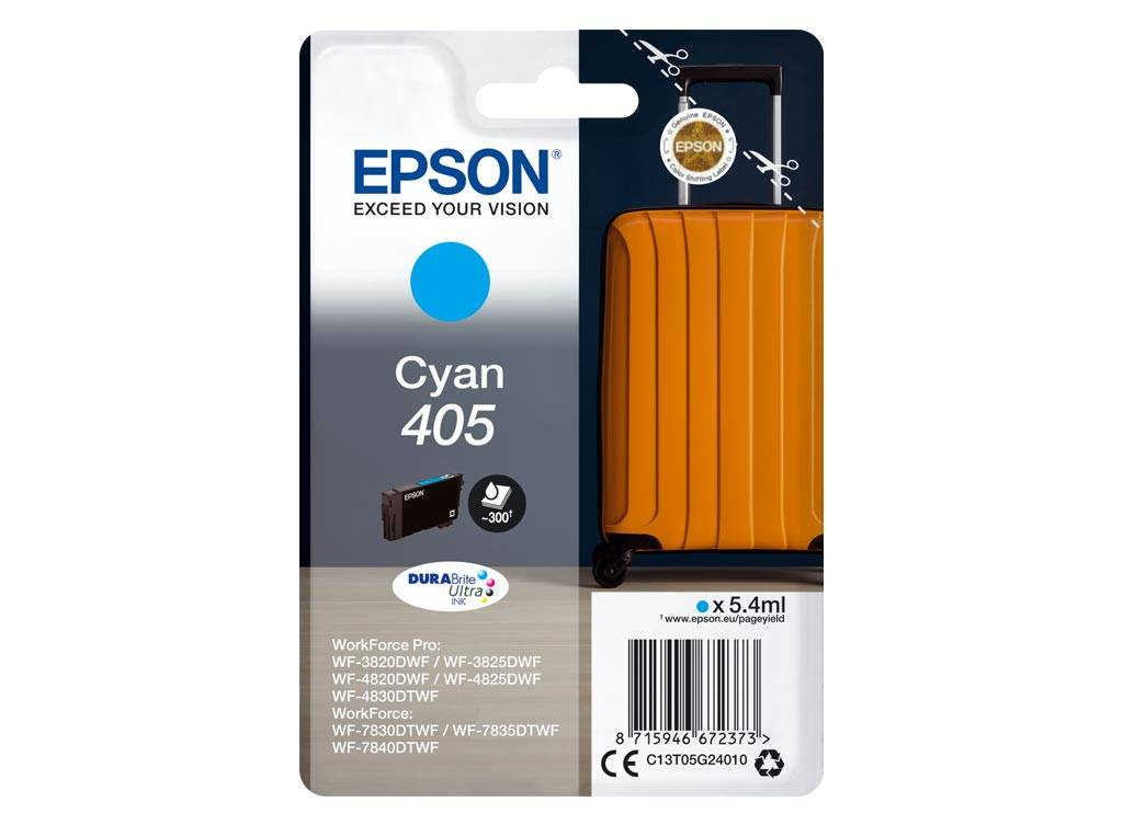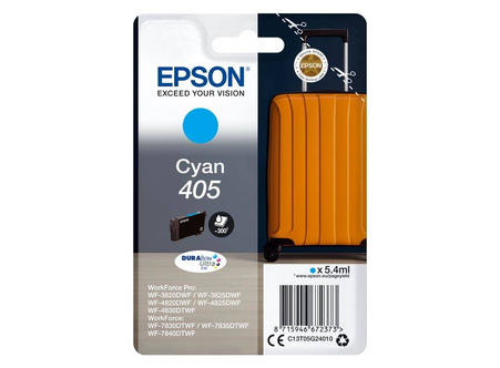 Tusz oryginalny Epson o symbolu 405 / C13T05G24010. Wydajność 300 stron. Produkt pochodzący z oficjalnej dystrybucji marki Epson. W opakowaniu znajduje się 1 sztuka drukująca w kolorze niebieskim.