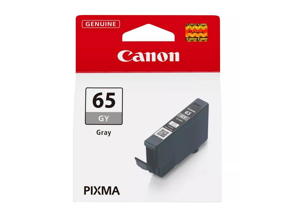 Tusz oryginalny Canon o symbolu CLI-65GY / 4219C001. Wydajność 12,6 ml. Produkt pochodzący z oficjalnej dystrybucji marki Canon. W opakowaniu znajduje się 1 sztuka drukująca w kolorze szarym.