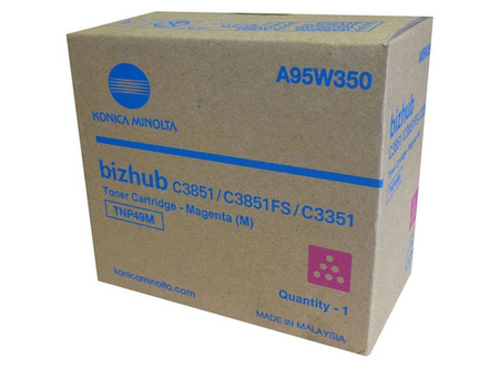 Toner oryginalny Konica Minolta o symbolu TNP49M / A95W350. Wydajność 12000 stron. Produkt pochodzący z oficjalnej dystrybucji marki Konica Minolta. W opakowaniu znajduje się 1 sztuka drukująca w kolorze magenta.