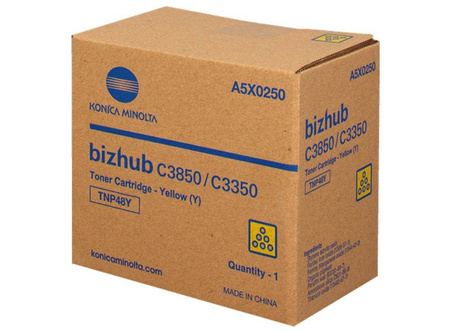 Toner oryginalny Konica Minolta o symbolu TNP48Y / A5X0250. Wydajność 10000 stron. Produkt pochodzący z oficjalnej dystrybucji marki Konica Minolta. W opakowaniu znajduje się 1 sztuka drukująca w kolorze żółtym.
