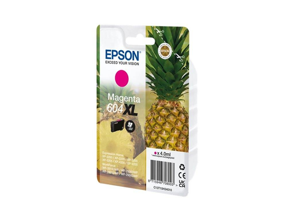 Tusz oryginalny Epson o symbolu 604XL / C13T10H34010. Wydajność 350 stron. Produkt pochodzący z oficjalnej dystrybucji marki Epson. W opakowaniu znajduje się 1 sztuka drukująca w kolorze magenta.