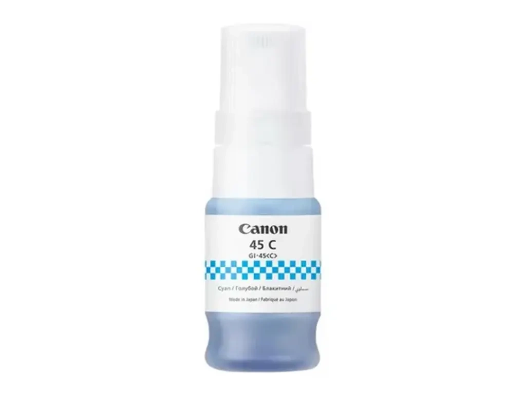 Tusz oryginalny Canon o symbolu GI-45C / 6285C001. Wydajność 3000 stron. Produkt pochodzący z oficjalnej dystrybucji marki Canon. W opakowaniu znajduje się 1 sztuka drukująca w kolorze niebieskim.