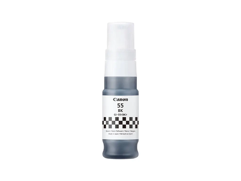 Tusz oryginalny Canon o symbolu GI-55BK / 6292C001. Wydajność 3000 stron. Produkt pochodzący z oficjalnej dystrybucji marki Canon. W opakowaniu znajduje się 1 sztuka drukująca w kolorze czarnym.