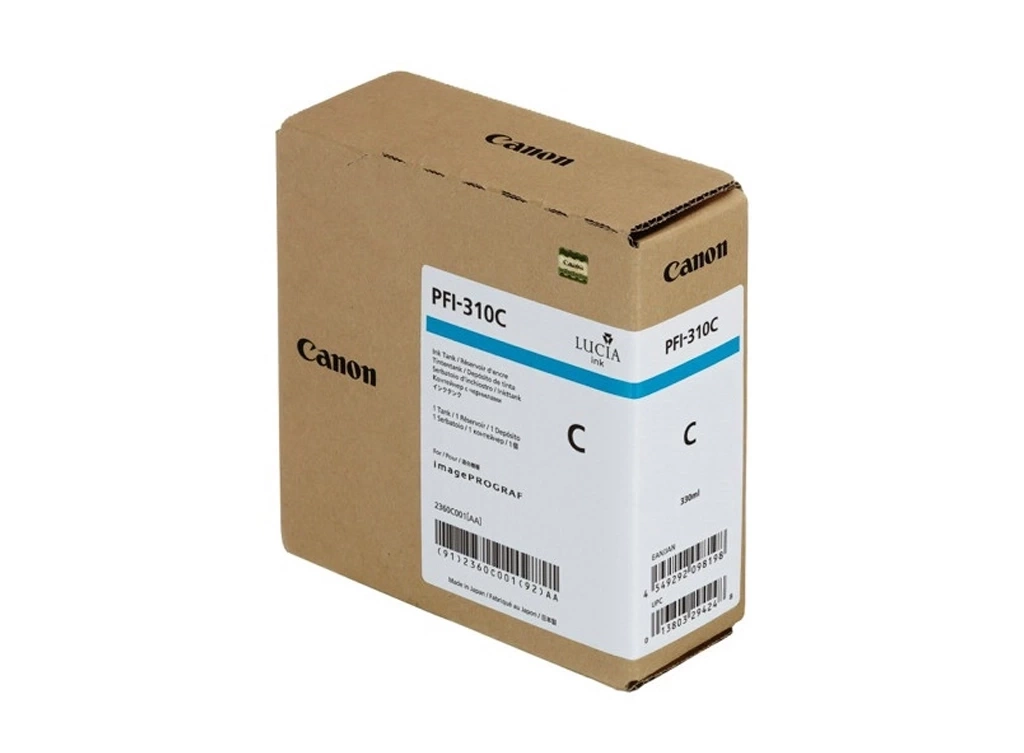 Tusz oryginalny Canon o symbolu PFI-310C / 2360C001. Pojemność 330 mililitrów. Produkt pochodzący z oficjalnej dystrybucji marki Canon. W opakowaniu znajduje się 1 sztuka drukująca w kolorze niebieskim.