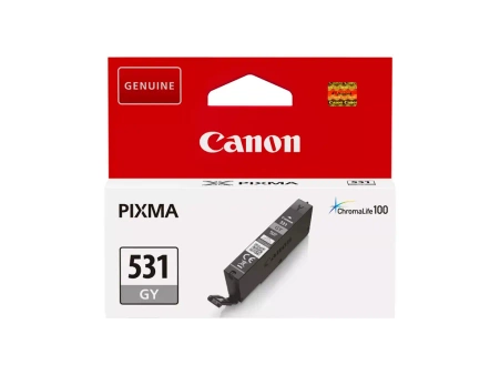 Tusz oryginalny Canon o symbolu CLI-531GY / 6122C001. Wydajność 525 stron. Produkt pochodzący z oficjalnej dystrybucji marki Canon. W opakowaniu znajduje się 1 sztuka drukująca w kolorze szarym.