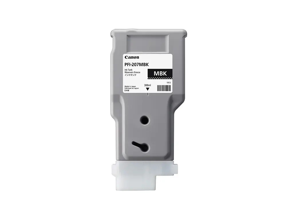 Tusz oryginalny Canon o symbolu PFI-207MBK / 8788B001. Pojemność 300 mililitrów. Produkt pochodzący z oficjalnej dystrybucji marki Canon. W opakowaniu znajduje się 1 sztuka drukująca w kolorze matowym czarnym.