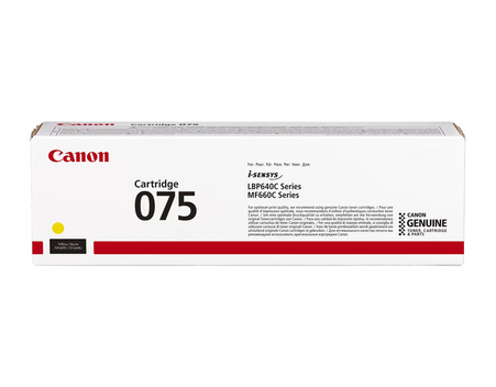 Toner oryginalny Canon o symbolu 075. Wydajność 1300 stron. Produkt pochodzący z oficjalnej dystrybucji marki Canon. W opakowaniu znajduje się 1 sztuka drukująca w kolorze żółtym.