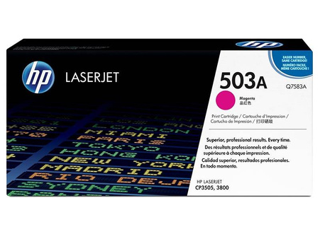 Toner oryginalny HP o symbolu 503A / Q7583A. Wydajność 6000 stron. Produkt pochodzący z oficjalnej dystrybucji marki HP. W opakowaniu znajduje się 1 sztuka drukująca w kolorze magenta.