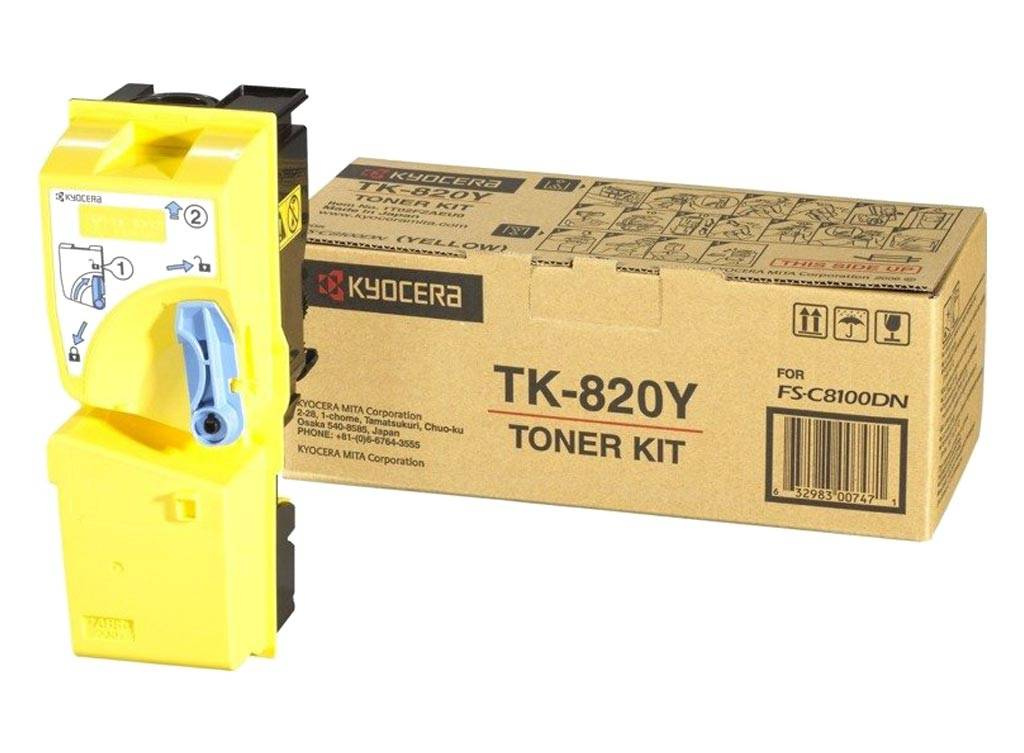 Toner oryginalny Kyocera o symbolu TK-820Y / 1T02HPAEU0. Wydajność 7000 stron. Produkt pochodzący z oficjalnej dystrybucji marki Kyocera. W opakowaniu znajduje się 1 sztuka drukująca w kolorze żółtym.