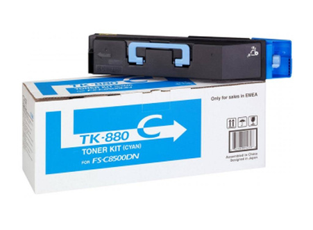 Toner oryginalny Kyocera o symbolu TK-880C / 1T02KACNL0. Wydajność 18000 stron. Produkt pochodzący z oficjalnej dystrybucji marki Kyocera. W opakowaniu znajduje się 1 sztuka drukująca w kolorze niebieskim.