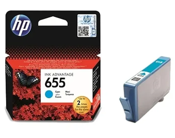 Niebieski, oryginalny tusz HP 655 (kod: CZ110AE) do serii drukarek HP DeskJest Ink Advantage. 1 szt. w opakowaniu. Jest kompatybilny m.in. z modelami 5525, 5525 Wi-Fi, 3525, 3520 (pełna lista kompatybilnych modeli powyżej). Ten produkt marki HP: