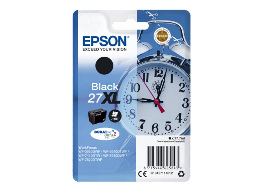 Tusz oryginalny Epson o symbolu 27XL / T2711, C13T27114010. Wydajność 1100 stron. Produkt pochodzący z oficjalnej dystrybucji marki Epson. W opakowaniu znajduje się 1 sztuka drukująca w kolorze czarnym.