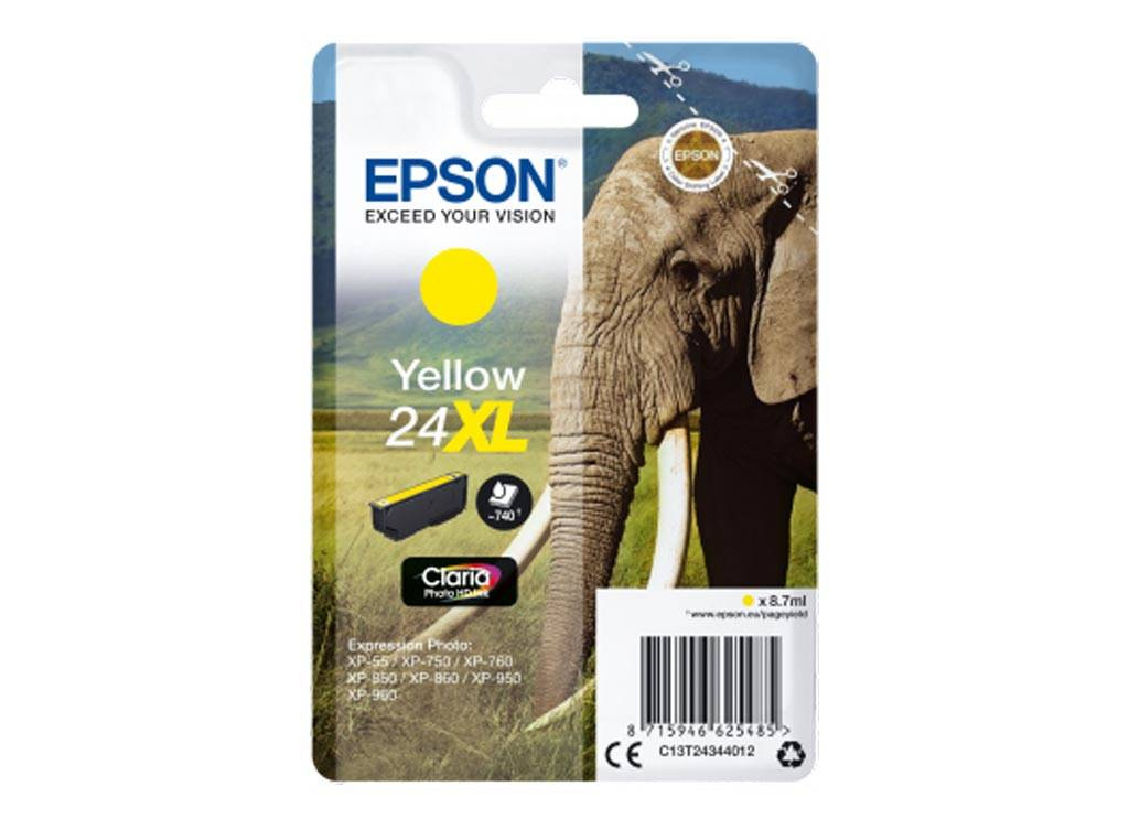 Tusz oryginalny Epson o symbolu 24XL / T2434, C13T24344012. Wydajność 740 stron. Produkt pochodzący z oficjalnej dystrybucji marki Epson. W opakowaniu znajduje się 1 sztuka drukująca w kolorze żółtym.