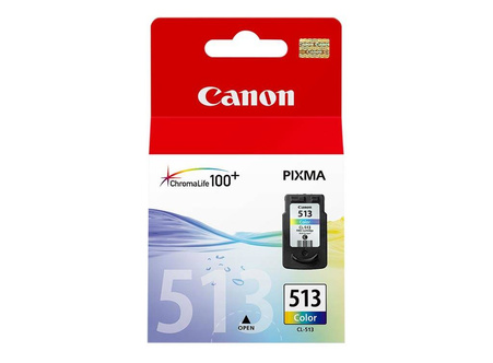 Tusz oryginalny Canon o symbolu CL-513 / 2971B001. Wydajność 350 stron. Produkt pochodzący z oficjalnej dystrybucji marki Canon. W opakowaniu znajduje się 1 sztuka drukująca w kolorze niebieskim, magenta oraz żółtym.