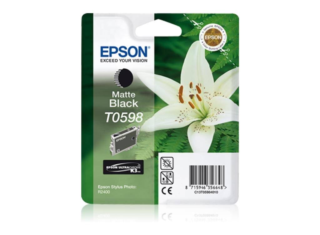Tusz oryginalny Epson o symbolu T0598 / C13T05984010. Wydajność 520 stron. Produkt pochodzący z oficjalnej dystrybucji marki Epson. W opakowaniu znajduje się 1 sztuka drukująca w kolorze czarny mat.