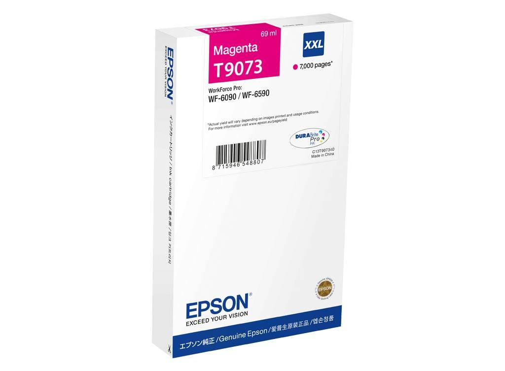 Tusz oryginalny Epson o symbolu T9073 XXL / C13T907340. Wydajność 7000 stron. Produkt pochodzący z oficjalnej dystrybucji marki Epson. W opakowaniu znajduje się 1 sztuka drukująca w kolorze magenta.