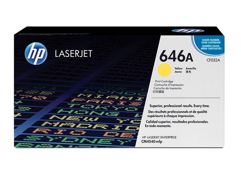 Toner oryginalny HP o symbolu 646A / CF032A. Wydajność 12500 stron. Produkt pochodzący z oficjalnej dystrybucji marki HP. W opakowaniu znajduje się 1 sztuka drukująca w kolorze żółtym.