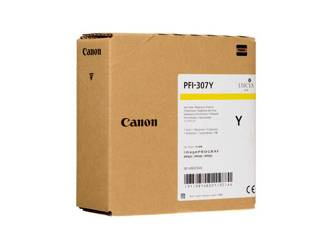 - Canon PFI-307Y [9814B001] – tusz żółty, 330 ml, gwarantujący naturalne i wyraziste odcienie żółci oraz zieleni.